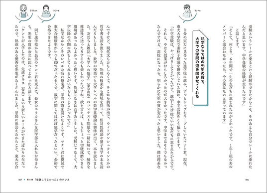 これは本書に登場するダイキ君の言葉です。ダイキ君は、第一志望校から第四志望校まですべて不合格。結局、滑り止め校に通いましたが、中学受験から6年後、このように述べています。