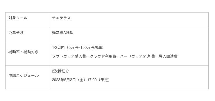 【チエテラスのIT導入補助金2023の採択内容】(URL:https://www.it-hojo.jp/)