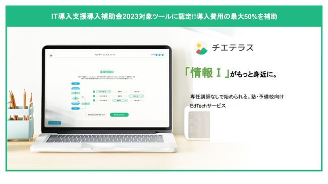 エンジニア向けキャリアサービスを運営する株式会社ローカルイノベーション(本社:東京都千代田区、代表取締役 工藤 嵩大)は、学習塾向け「情報I」EdTechサービス「チエテラス」が、サービス等生産性向上IT導入支援事業費補助金(以下、「IT導入補助金2023」)の対象ツールとして採択されたことをお知らせします。
