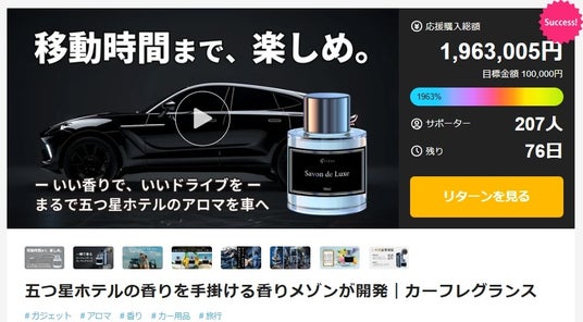 ~五感を満たすドライブへ~プロジェクトページ公開開始からわずか10分で目標金額を達成。サポーターは開始10日で200人を超え期待集める