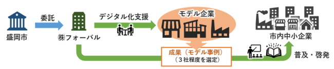 「盛岡市中小企業デジタル化促進モデル事業」は、新型コロナウイルス感染症の感染拡大を契機とした「新しい日常」の実現、また持続可能な地域社会・経済の発展を支えるため、市内の中小企業におけるデジタル化による企業価値向上や生産性向上につながる取り組みをモデル企業として支援するとともに、その支援により得られた成果をモデル事例として波及させることにより、市内の中小企業のデジタル化を促進し、業務効率化や高付加価値化につなげ、市内企業の持続的な成長を支援することを目的としています。