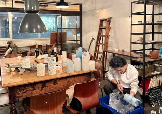 ミナイマサシはこう言う。「次回来る頃までに、自宅でもぜひキャンドルを使ってみてほしい。もちろん火を灯すと減って行くので、"もったいない"って思うと思うんです。でも自分の中で何かを決めて灯してほしいと思っている。例えば自分のための時間、本を読む時間、家族と過ごすための時間とか。一回も灯さなかったら、その時間を取り分けることができなかったって目安にもなるし、時間の大切さを感じることができる。そんなふうに使ってもらえたらとても嬉しい。」