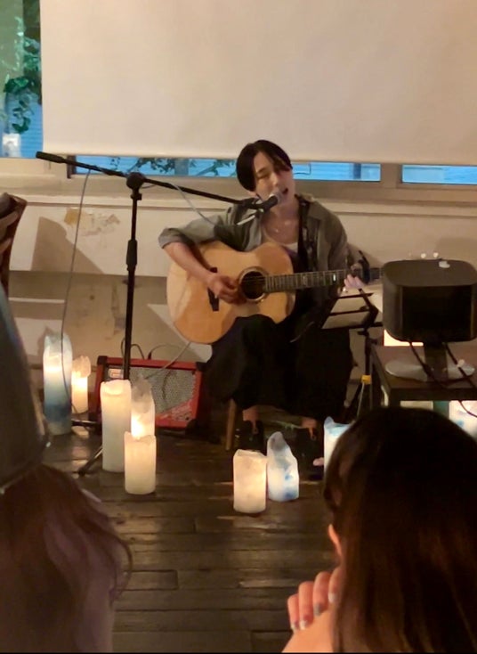 生演奏の音楽食事が終わる頃、生演奏によるライブが行われた。今回のゲストは、シンガーソングライターの竹澤汀だった。キャンドルと相性の良い歌声に、スタッフ含む会場の全ての人が心を奪われた。毎回ゲストを呼べるかはわからないが、今後も楽しんでもらえるコンテンツやイベントを増やして行くという。次回以降はショートムービーやワークショップなども検討しているそうだ。