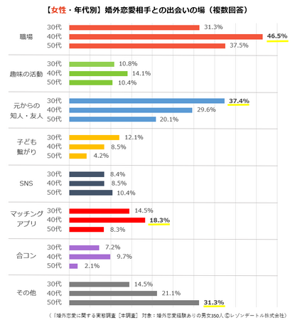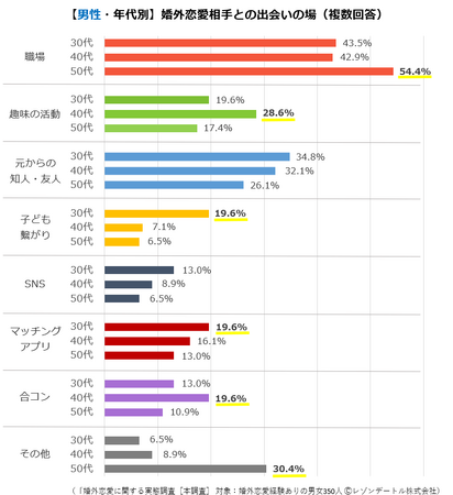 ●男女別・年代別:婚外恋愛の「出会いの場」