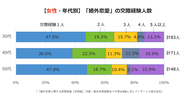 ●女性・年代別:婚外恋愛経験者の「交際人数」