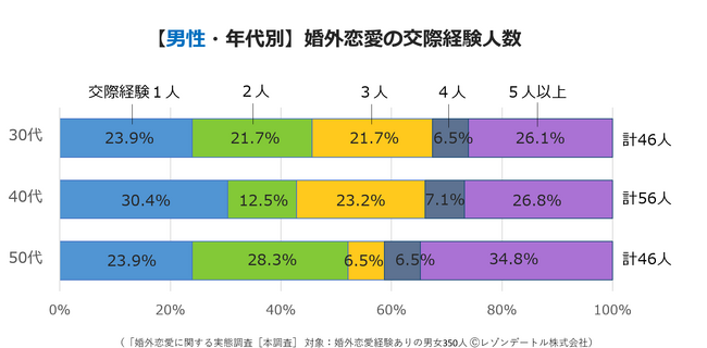 ●男性・年代別:婚外恋愛経験者の「交際人数」