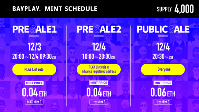 『BAYPLAY』はジェネレーティブNFTとして、以下の日時でプレセールから順次展開しての販売を行います。