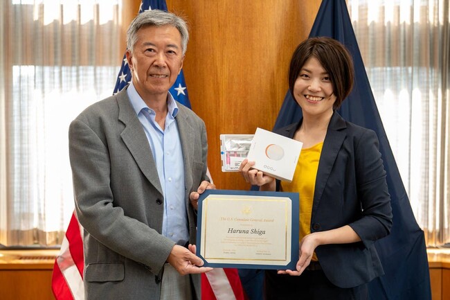(写真) 人事局労政部厚生担当部長 水野善雄様へEggUの贈呈