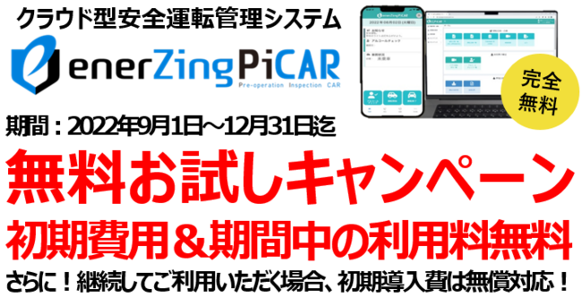 クラウド型安全運転管理アプリenerZingPiCARの初期費用”無料”、お試し期間”無料”のキャンペーン