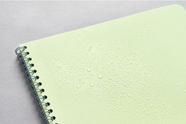 海の豊かさを守るためプラスチックの代替素材として開発された、「FSエリプラ+(プラス)」を採用しました。「FSエリプラ+」は、表面に特殊加工を施されており、水や油に強く、食品のパッケージにも採用されています。多少の汚れをふき取ることができるので、気付かないうちにつく手汗や手油による汚れを防ぐことができます。