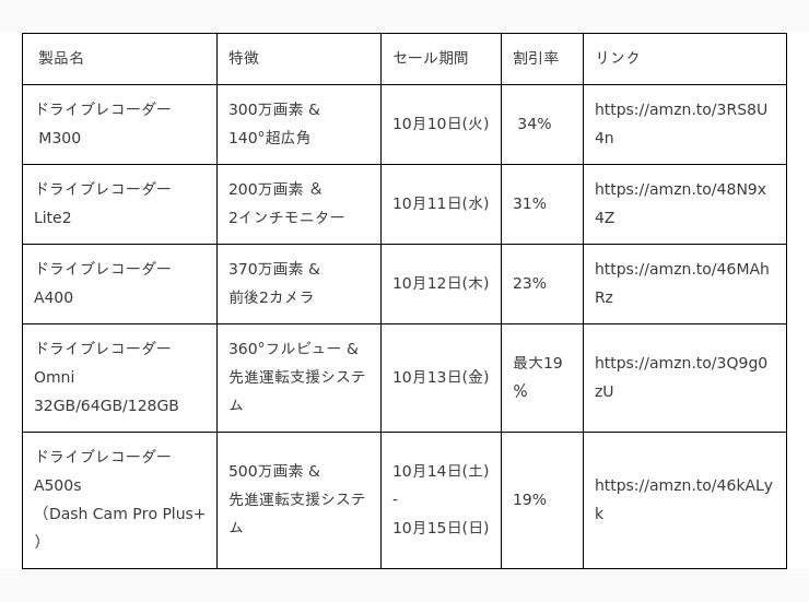 70maiは、自動車インテリジェンスの分野で業界をリードする自動車テクノロジー企業として知られています。このたび、Amazonの秋のタイムセール祭りに参加し、10月10日(火)~10月15日(日)の期間中、最大34%OFFの数量限定タイムセールキャンペーンを開催します。