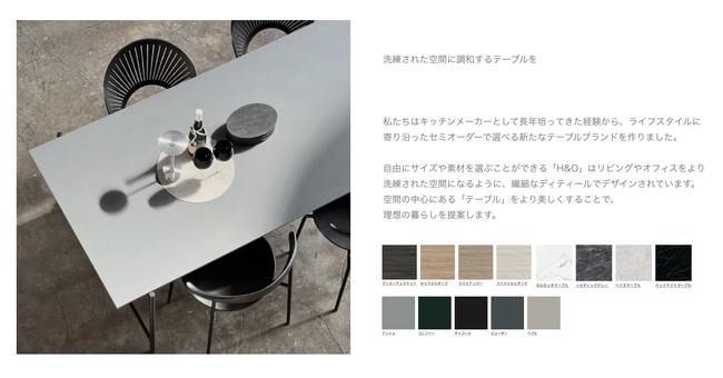 株式会社マイセット製作所(本社:神奈川県綾瀬市、代表取締役:高橋 大、以下当社)は、自由にサイズと素材を選ぶことができるテーブルブランド「H&O」(エイチアンドオー)を設立いたしました。2024年3月25日より公式ECサイトにて販売開始いたします。