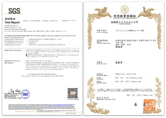 LazyUP2.0は日本実用新案登録を取得しているだけでなく、SGSの厳格な耐荷重テストもクリア。台湾製ならではの高い品質と安全性を兼ね備えています。