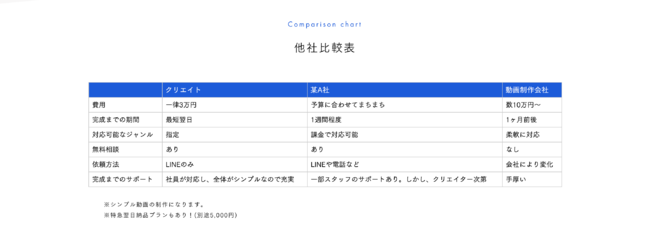 シンプル動画のみの制作となりますが、LINEで全てやりとりが完結し、写真などを選ぶ必要もなく、最短1日・長くて5日で動画が完成する新サービスです。