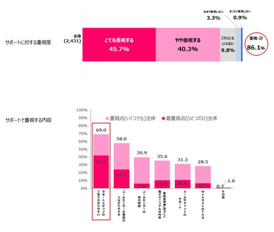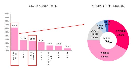 - 利用の多いコールセンターサポートの満足度は「76%」