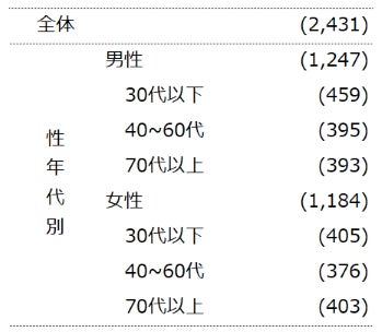 調査対象 16歳~30代/40~60代/70代以上の男女