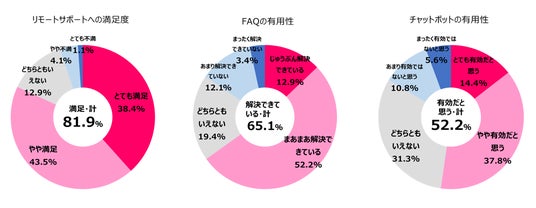 - リモートサポートの利用経験者は26%、まだ浸透はしていないものの利用者のうち満足度は82%