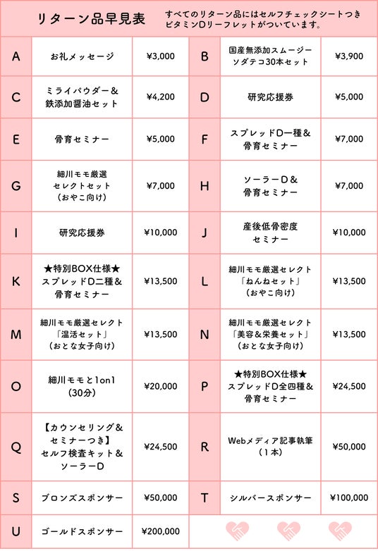 支援が自身のビタミンD摂取につながるリターンを多数ご用意