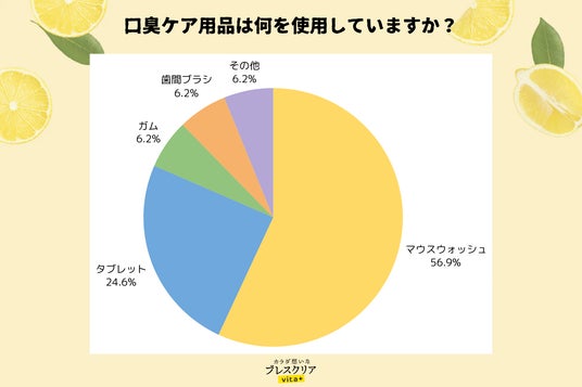 また、使用されているケア用品としては「マウスウォッシュ」が最も多く、続いて「タブレット型ケア」が支持を集める結果となり、“手軽に使えるケア製品”へのニーズの高まりも読み取ることができています。