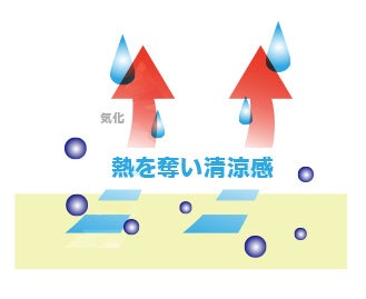 粒径が極微粒なミスト(=約15μm以下)は気化しやすく、蒸発の際空気の熱を奪います。 「ミストイージー」は、この「気化冷却」で空間を冷却します。べたつきや濡れ感を抑え、快適な清涼感が得られるのが特徴です。また、コンプレッサーの必要エアー量を抑え消費電力を極力削減しました。