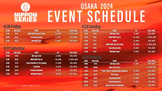 海外ポーカーツアーである「ASPT (Asia Series Poker Tour)」を展開する運営陣によって創り上げられるNIPPON SERIESは、2023年12月末に第1回大会をスタートさせ、3日間で約3000人という参加人数を記録した。