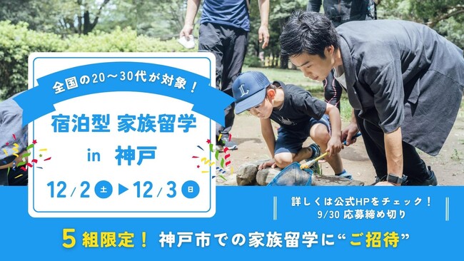 国内の子育て家庭に訪問できる体験プログラム「家族留学」の宿泊型を神戸市にて実施決定!