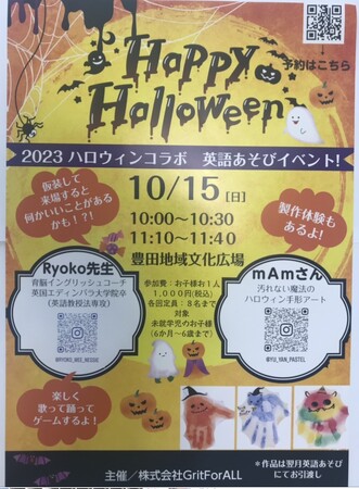 昨年10月に会社立ち上げ以降、毎月『英語あそび』にご参加下さる方も沢山いらっしゃいまして、皆様への日頃の感謝の気持ちを込めて、10月15日(日)に既存の生徒さん向けにハロウィンコラボイベントを開催いたします!