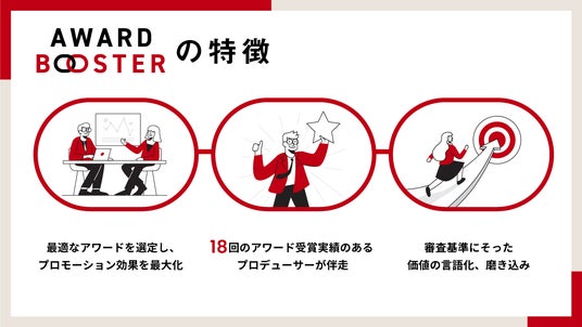 アワードを活用したプロモーション戦略支援サービス「Award Booster(アワードブースター)」で支援させていただいた企業・チームの方々が、アワードへの挑戦・アワード受賞をきっかけに、企業の成長を実感されています。