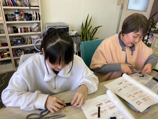 省スペース、省コストで、ひとつ30分ほどで完成できるリボンも。隙間時間を活用し、育児や介護との両立、副業として受講する生徒も増えている