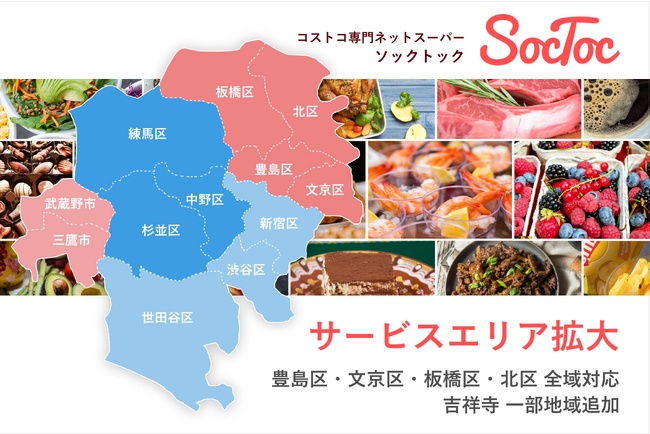 会員制倉庫型店「Costco Wholesale(コストコ ホールセール)」の食料品や日用品を専門に扱うネットスーパーサービス「SocToc(ソックトック)」を運営する株式会社WeCanDoIt(本社: 東京都新宿区、代表取締役: 大里健祐、以下、当社)は、23年6月中旬頃よりサービス提供エリアを拡大することをお知らせ致します。