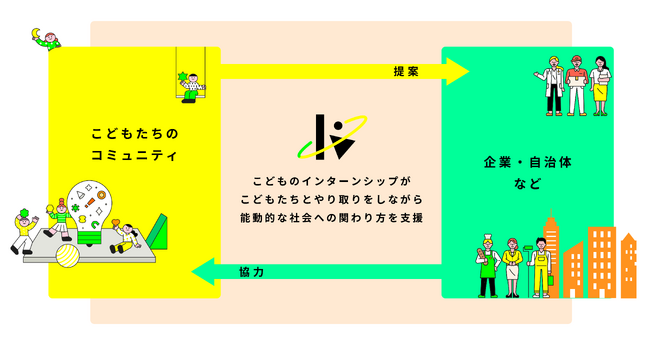 子どもたちは“企業のインターンシップ生”となって、子どもなりの視点とアイデアで、課題の解決や、未来に向けた提言を行ないます。
