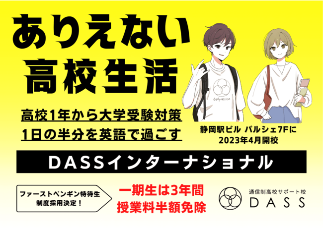 2023年4月、静岡駅ビルパルシェに、高校生向けのインターナショナルスクールDASSを開校する。