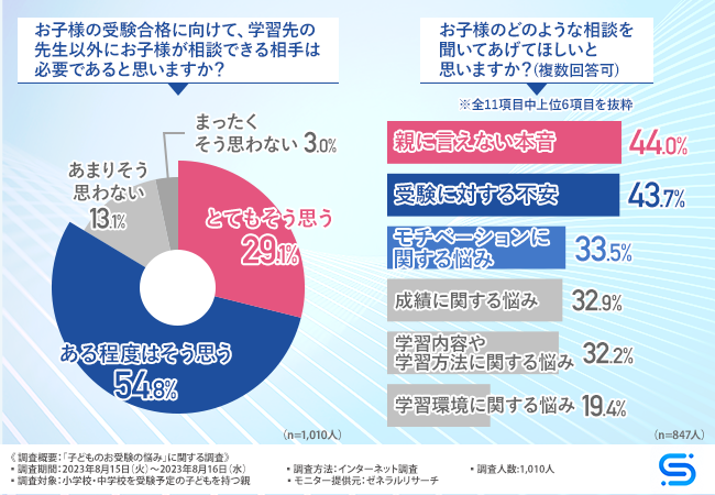 今回の調査で、受験を控えた親子の悩みの実態が明らかになり、約8割の親御さんが、子どもの受験に関して悩みがあるという結果が出ました。