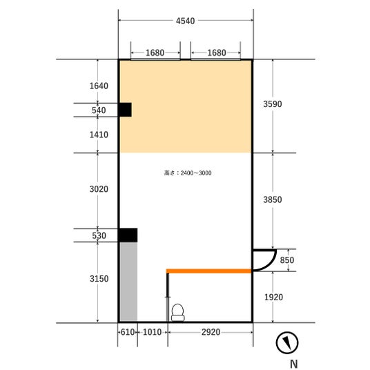 個性ある壁色と50年以上前の味わい深いコンクリート床の空間での撮影が可能。