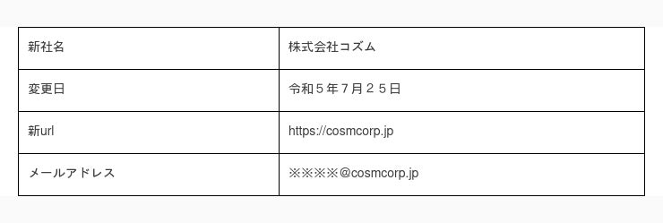 ※メールアドレスは上記の通り変更いたしますが、当面の間は旧メールドメイン(cosmgate.io)でもご対応させていただきます。