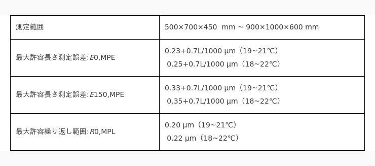 LEGEX 匠モデルは、従来モデルからの誤差要因の分析・排除だけでなく、「匠マイスター制度」 によって培われた超高精度ラップ技術、仕上げ技術を活用することで、最大許容長さ測定誤差:E0,MPE=(0.23+0.7L/1000)μm、従来比26%アップの精度を実現しました。これは1 mのものを測定したときの誤差が、従来モデルの1.28μmから0.93 μm以下という、測定精度がついにサブマイクロメートル台に突入したことを意味します。