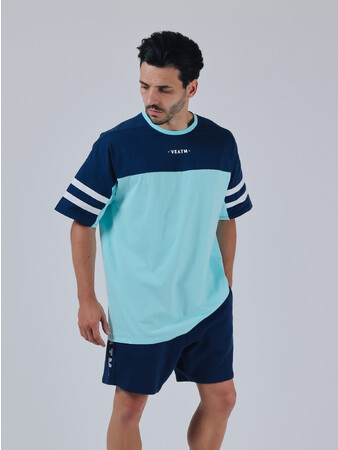 バックにラインが大胆に入りミラーロゴのプリントと脇のパイピングが
