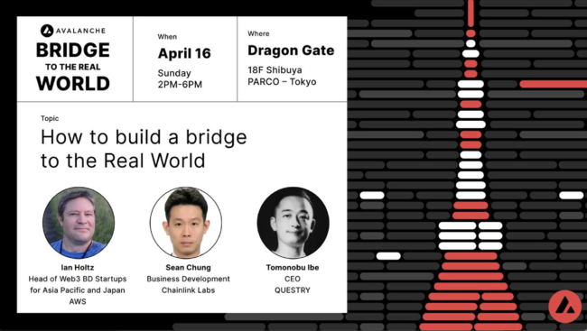 本イベントにおいて、Avalanche、Chainlink、Amazon AWSとともに”How to build a bridge to the Real World”についてパネルディスカッションを行います。