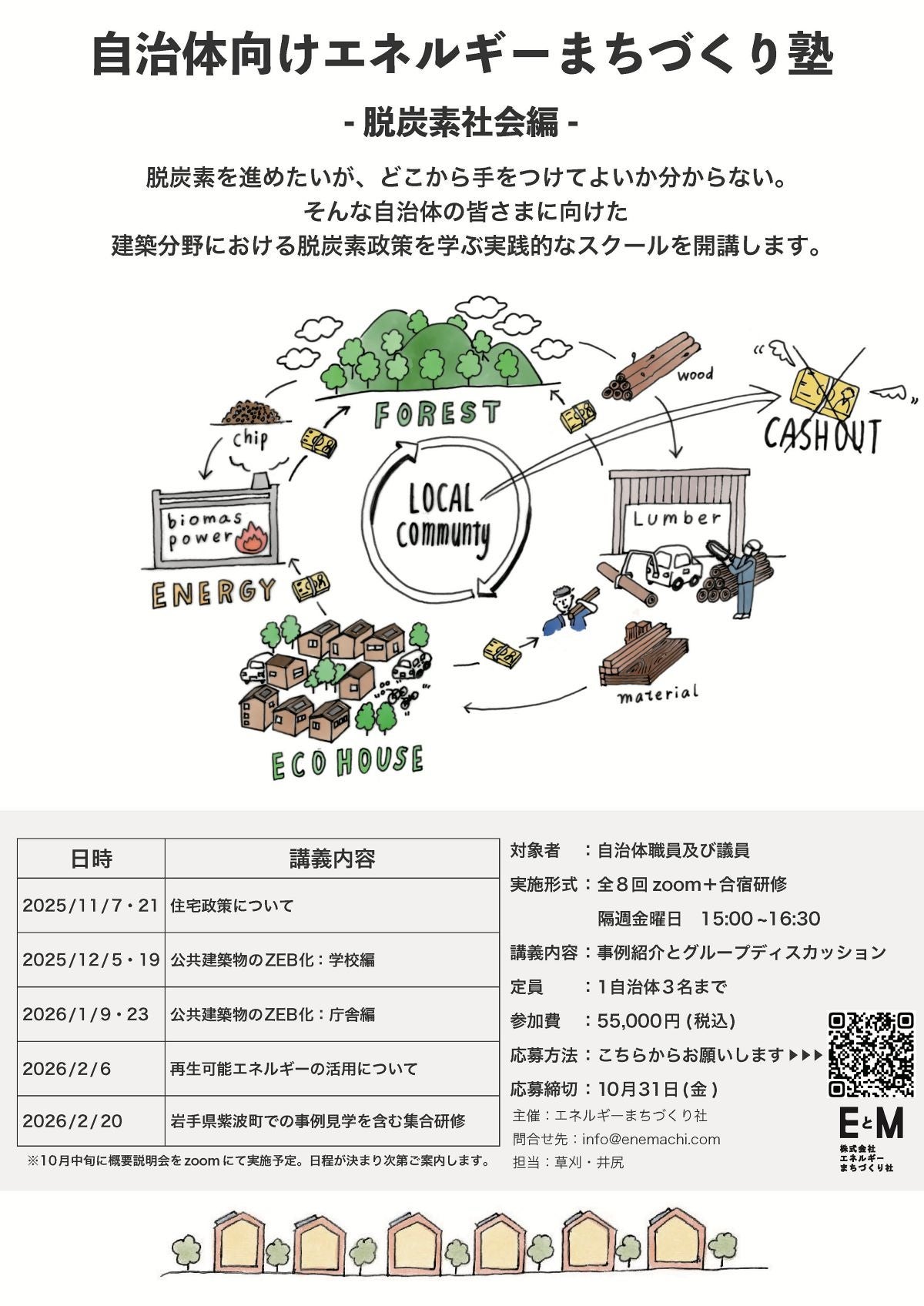 この受賞を機に、エネルギーまちづくり社は、2025年11月7日より「自治体向けエネルギーまちづくり塾 -脱炭素社会編-」を開講します。