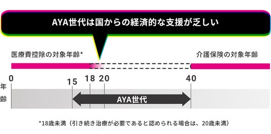 2023年3月に閣議決定された第4期がん対策推進基本計画ではAYA世代のがんに特化したがん対策ならびに療養環境への世代特有の支援の向上が個別目標として挙げられています。しかしながら、AYA世代のがんは希少性と多様性が特徴であり、患者数が少なく、多領域にまたがって存在していることなどが、この世代のがん対策を進めることを難しくしています。また、AYA 世代は就学、就労、結婚、妊娠、出産、育児などライフステージが大きく変化する時期でもあり、この世代でがんを発症した場合は医療分野だけでなく、社会全体の幅広くきめ細やかな支援が求められます。