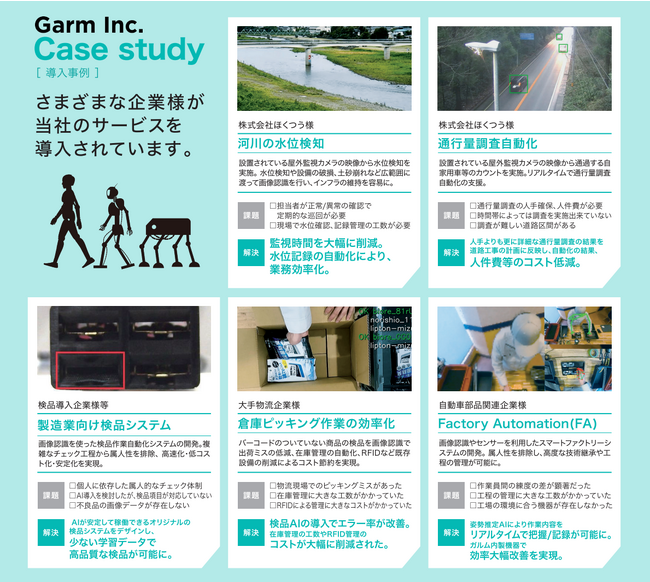 ガルムはこれまで製造業や物流業、インフラ事業などの現場において、効率化・省人化を目的としたオーダーメイドでのAIシステムの提供を行ってまいりました。