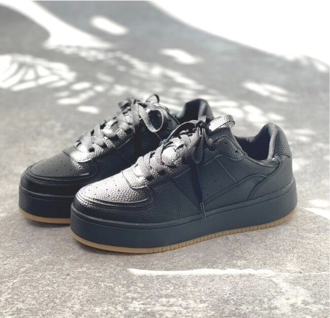 テニスやバスケットボールなど、コートでプレーするスポーツのためのシューズである「コート系スニーカー」。フラットなソールとシンプルなデザインが特徴です。「軽量厚底 ベーシック コートスニーカー 1483」はそんなコート系スニーカーに軽量厚底をプラスオン。スタイルアップが期待できるような、シューズインクローゼットらしいデザインに仕上げました。