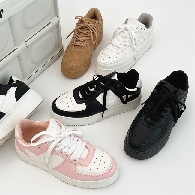 カラーはコート系シューズの定番カラーである「ホワイト」をはじめ「ブラック」「ブラック(ベージュソール)「ブラック×ブラック」「ブラック×ホワイト」「ベージュ」「ピンク×ホワイト」「アイボリー」と充実の8色展開。プチプラですので、色違いで揃えて、その日の気分に合わせてコーディネートもおすすめです。