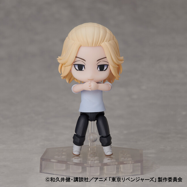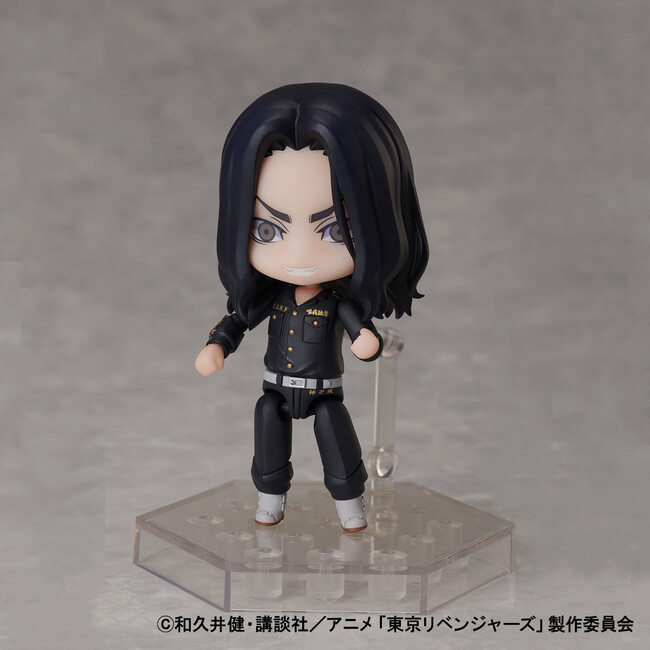 第一弾は、「東京卍會」総長を務める“無敵のマイキー”こと佐野万次郎を、全身フル可動デフォルメフィギュア「でふぉるむぷらす」としてリリースいたします。トレードマークの肩に羽織った特攻服は付け外し可能な仕様となっており、座りポーズを取らせることも可能です。
