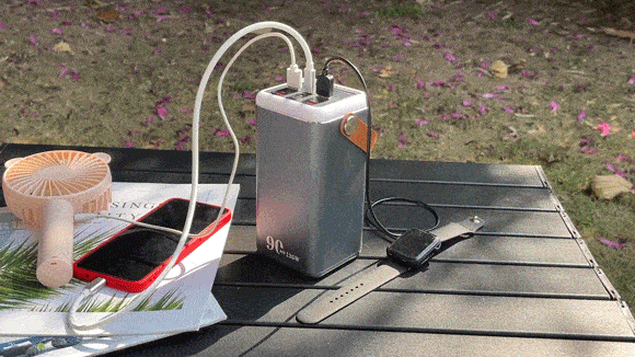90,000mAhの大容量バッテリーにより、スマホだけでなく、タブレットやカメラ、携帯型ゲーム機など様々なデバイスに充電できます。日帰りのアウトレジャーや旅行、野外撮影など幅広いシーンで大活躍します。