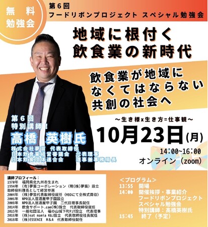 「すべての子ども達がいつでも安心して食事ができる世の中」へと、全国の飲食店が場となって実施されている子ども食事支援活動「フードリボンプロジェクト(運営団体:一般社団法人ロングスプーン協会)」が、月に一度、外食産業の著名人を講師に招聘するオンライン勉強会を実施しています。