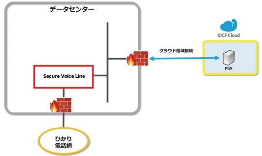 「Secure Voice Line」が設置されているデータセンターには、クラウドPBX事業者で多く利用されているIDCフロンティア社の「IDCFクラウド」との間にプライベートコネクト(閉域回線)が開設されております。