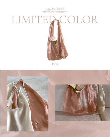 また本POP UP STORE実施期間中に、店頭で10,000円(税込)以上お買い上げのお客さまに、今回のためにご用意したオリジナルのオーガンジーバッグをプレゼント。ivoryとOSAKA POPUP限定カラーのpinkの2色のうちからお選びいただけます(数量限定、無くなり次第終了)。