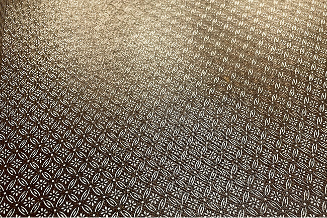 漆は、漆器や文化財建造物のみならず、伝統的な染織文化にも欠かせない材料でした。防水性や染料に対する耐薬品性もあることから、着物の生地に柄や文様を染めるための型紙の補強剤として用いられてきました。当社の協業パートナーの西陣の漆屋「佐藤喜代松商店」も、かつては伝統工芸である「伊勢型紙」の一大生産地に出張所があり、友禅型紙用の漆をメインに製造していました。本製品はその漆技術から着想を得て誕生しました。