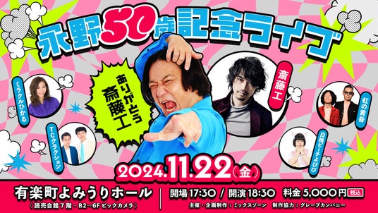 2024年11月22日(金)芸人 永野の50歳記念ライブを開催!